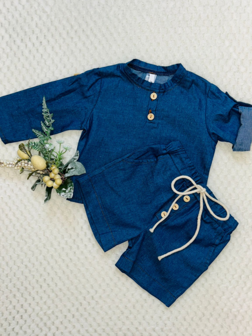 - Pantalon cu manseta si bretele reglabile din in
